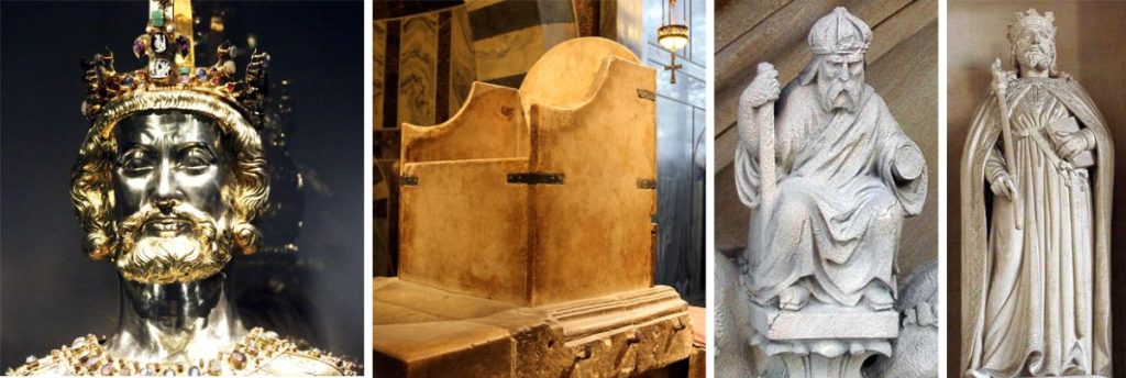 Son empire, de l’Elbe aux Pyrénées, de la mer du nord au Latium romain, est immense et regroupe de multiples territoires diversifiés acquis lors de campagnes militaires intenses. Petit-fils de Charles Martel, succédant à son père Pépin le Bref, premier roi de la dynastie carolingienne, roi des Francs, il est couronné empereur le 25 décembre 800 par le pape Léon III qui s’agenouille devant lui.
